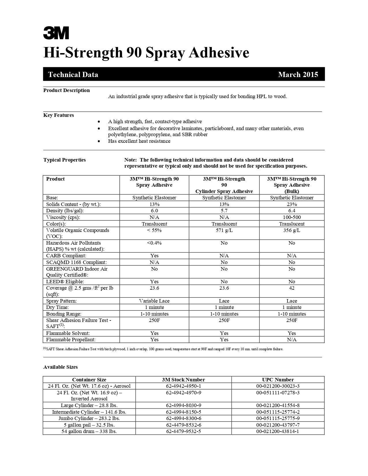3M™ Hi-Strength 94 ET, Cylinder Spray Adhesive
