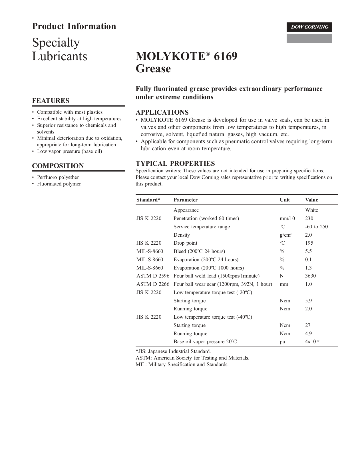 MOLYKOTE® 3452 Chemical Resistant Valve Grease