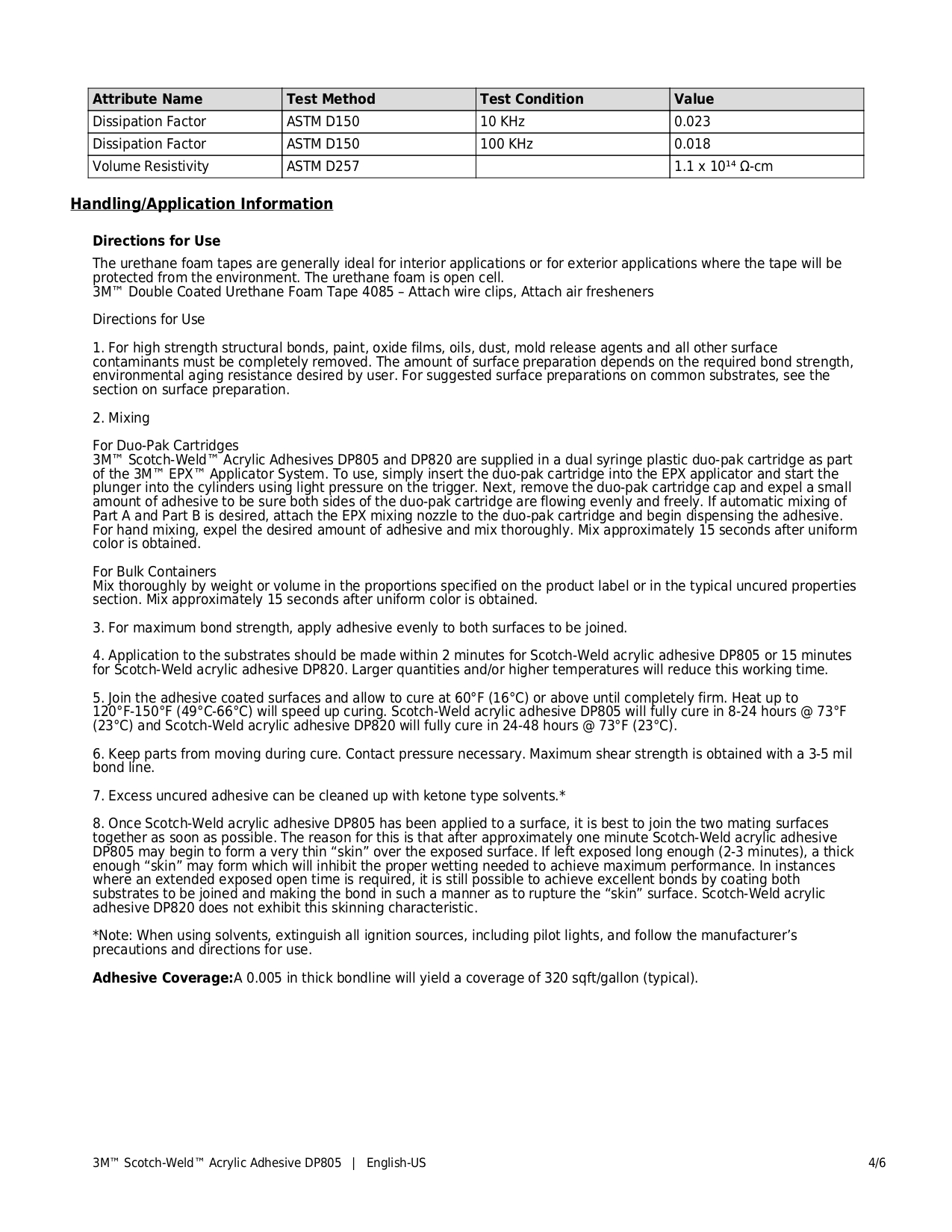 The 3M™ Scotch-Weld™ Acrylic Adhesive DP805 is a two-part, toughened acrylic structural adhesive designed for high-performance bonding across a variety of substrates. Its formulation offers excellent shear and peel strength, making it suitable for demanding industrial applications.