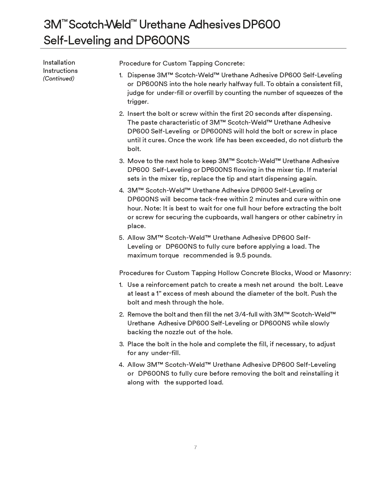 The 3M™ Scotch-Weld™ Concrete Repair DP600NS is a quick-curing, two-part polyurethane adhesive designed for repairing cracks, spalls, and breaks in concrete, masonry, and stone. Its non-sag formula makes it ideal for vertical and overhead applications, providing durable and long-lasting repairs.