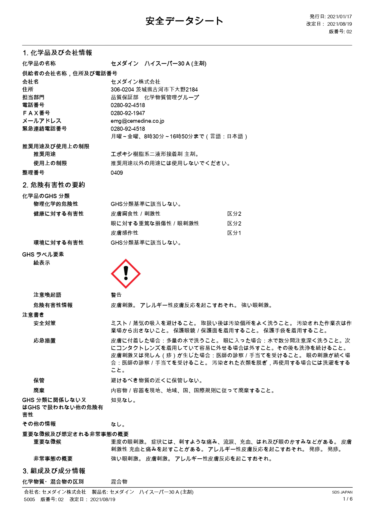 Cemedine CA-193is a two-component epoxy adhesive that begins to cure about 30 minutes after mixing and provides strong, durable bonds for hard materials.