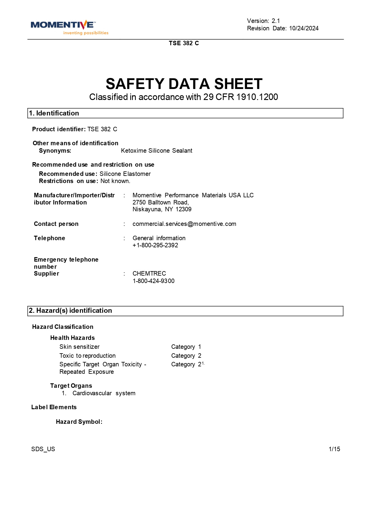 Momentive TSE382 Silicone Adhesive One-Component